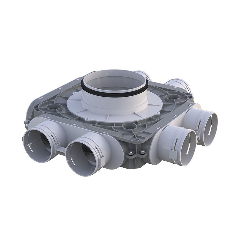 Do rozprowadzania powietrza do kanałów elastycznych Ø75 mm w systemach wentylacji nawiewnej i wywiewnej pomieszczeń.