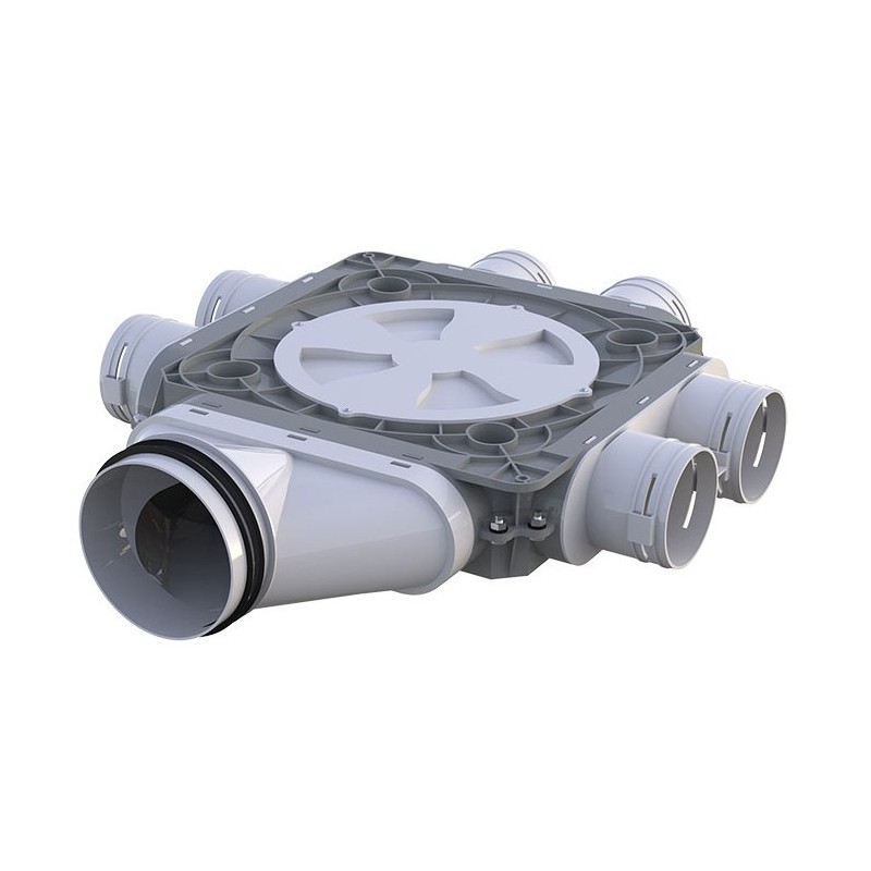 Dane techniczne:Wymiary przyłączeniowe: 6xØ75 mm / 125 mmTemperatura pracy: od -20 do +60°С.W zestawie uchwyty do mocowania kanałów FlexiVent 03..Uszczelka obwodowa FlexiVent 0575 (gwarancja szczelności w klasie C).Producent: Vents |