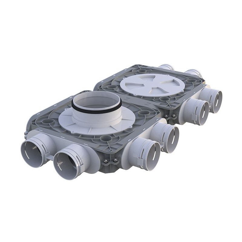Do rozprowadzania powietrza do kanałów elastycznych Ø75 mm w systemach wentylacji nawiewnej i wywiewnej pomieszczeń.