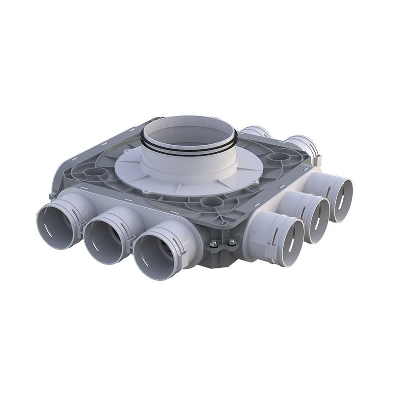 Do rozprowadzania powietrza do kanałów elastycznych Ø75 mm w systemach wentylacji nawiewnej i wywiewnej pomieszczeń.
