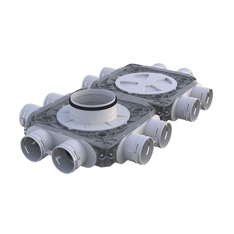 Dane techniczne:Wymiary przyłączeniowe: 12xØ75 mm / 160mmTemperatura pracy: od -20 do +60°С.W zestawie uchwyty do mocowania kanałów FlexiVent 03..Uszczelka obwodowa FlexiVent 0575 (gwarancja szczelności w klasie C).Producent: Vents |