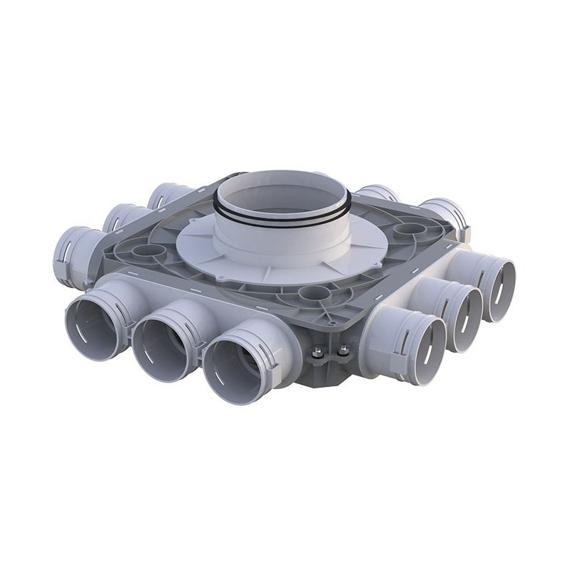 Do rozprowadzania powietrza do kanałów elastycznych Ø75 mm w systemach wentylacji nawiewnej i wywiewnej pomieszczeń.